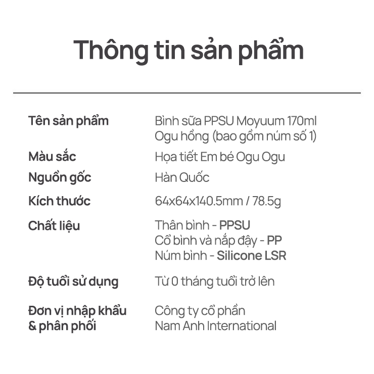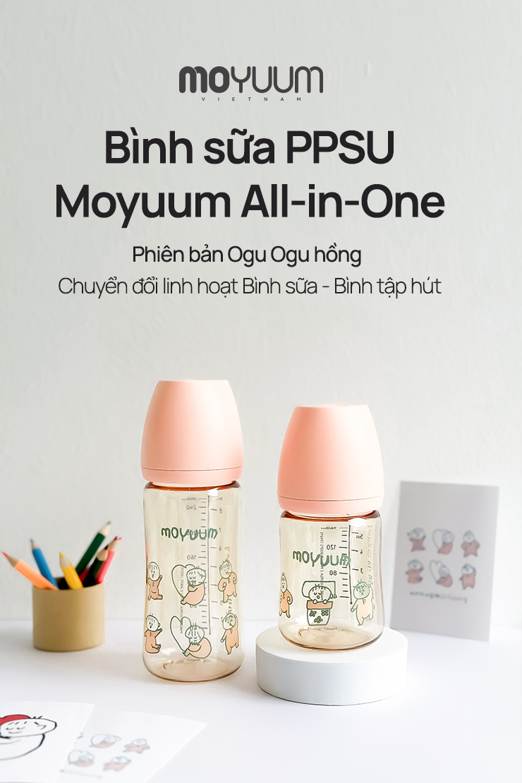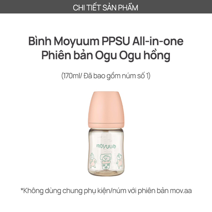 Bình sữa PPSU Moyuum - Ogu hồng - 170ml - Kèm núm 1