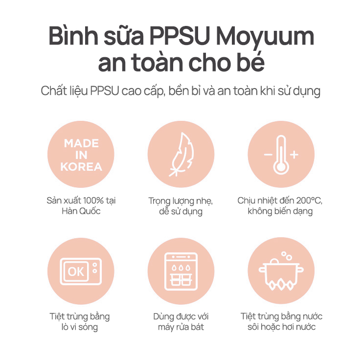 Thế hệ 3 - Bình PPSU Moyuum - Mẫu trơn - 270ml - KHÔNG NÚM