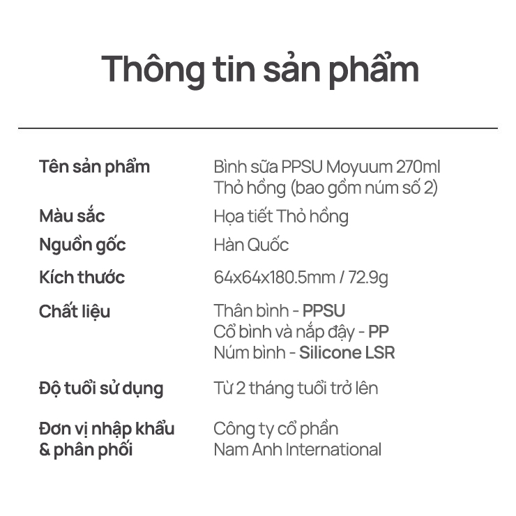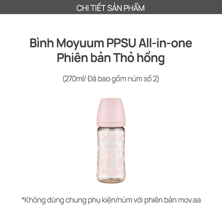 Bình sữa PPSU Moyuum - Thỏ hồng - 270ml - Kèm núm 2