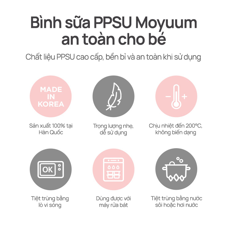 Thế hệ 3 - Bình PPSU Moyuum - Mẫu trơn - 330ml - KHÔNG NÚM