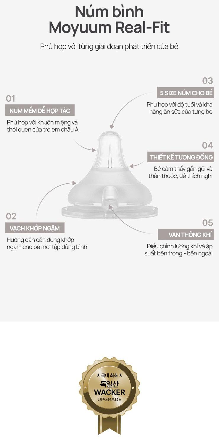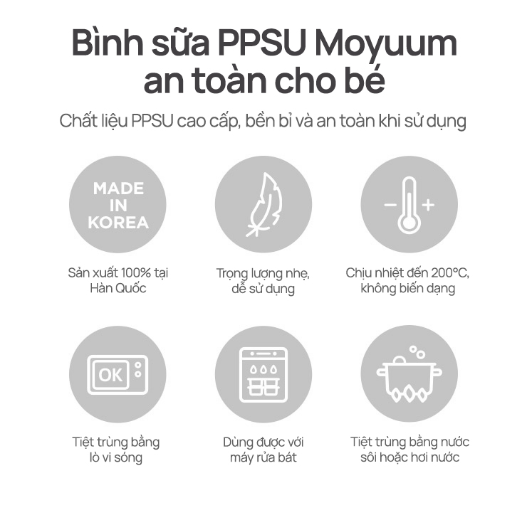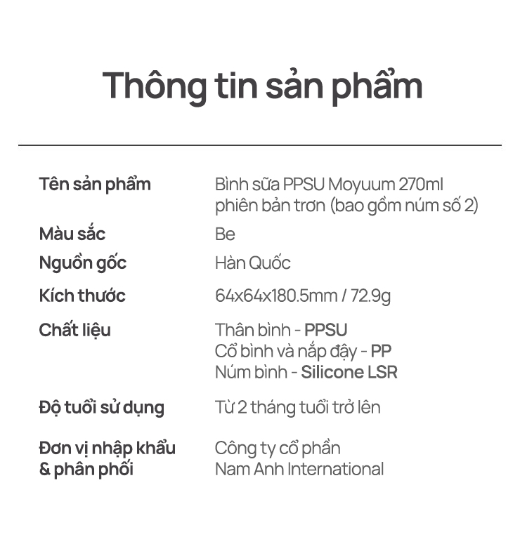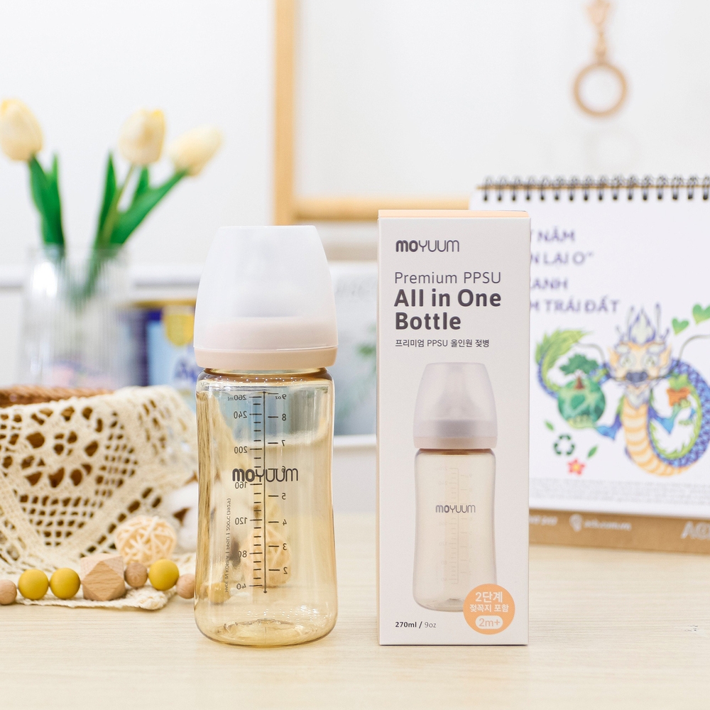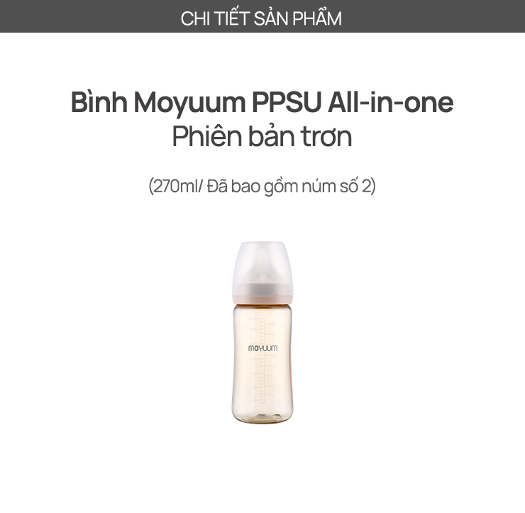 Bình sữa PPSU Moyuum - Trơn - 270ml - Kèm núm 2