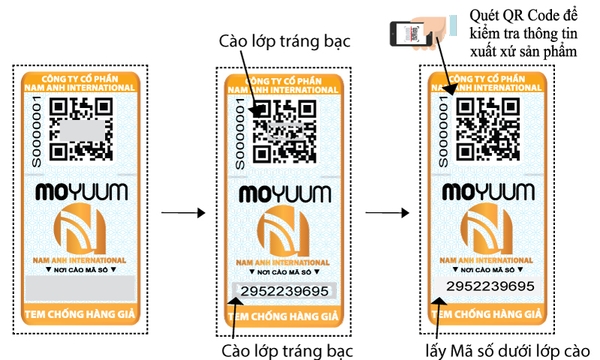 Theo đó, bộ tem phụ gồm 2 loại: Tem tròn 7 màu niêm phong và tem tích hợp tiếng Việt được sử dụng thay thế và có hiệu lực đồng thời cùng bộ 3 tem cũ. Các công nghệ chống giả như tem chống bóc, SMS xác thực, đổi màu khi chiếu UV được áp dụng nhằm đảm bảo sự an tâm cho khách hàng khi mua sản phẩm Moyuum chính hãng.