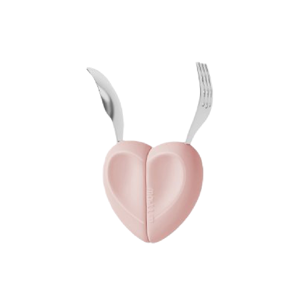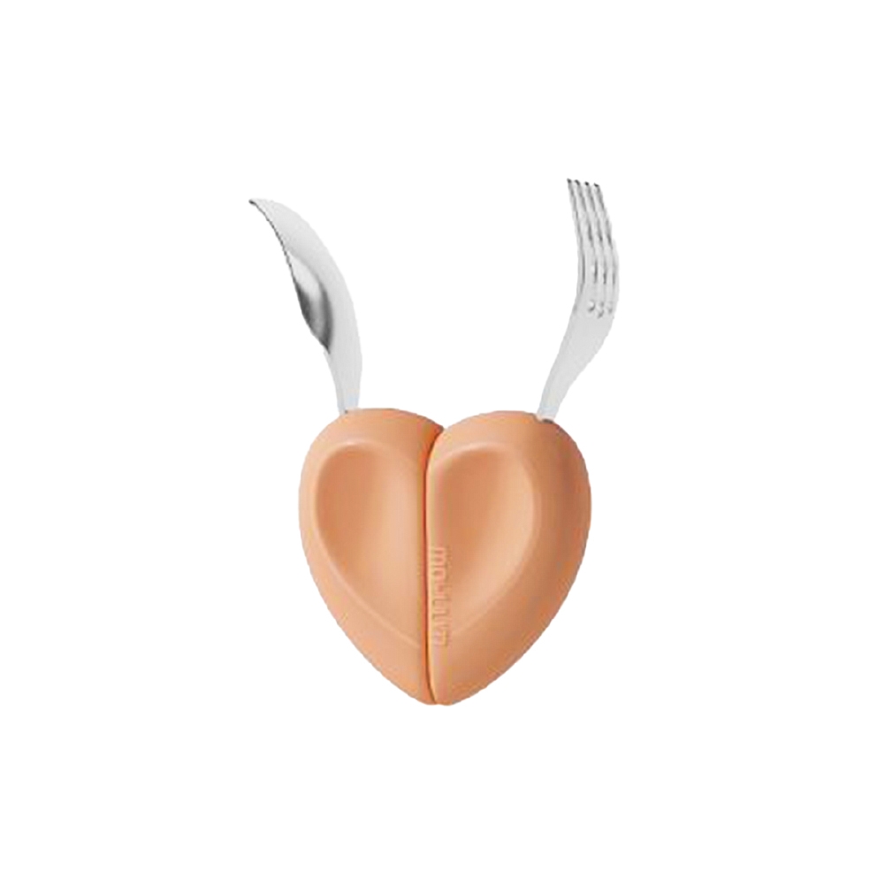 Bộ thìa dĩa Moyuum - Tay cầm silicon hình trái tim - Màu Vàng/Hồng/Cam