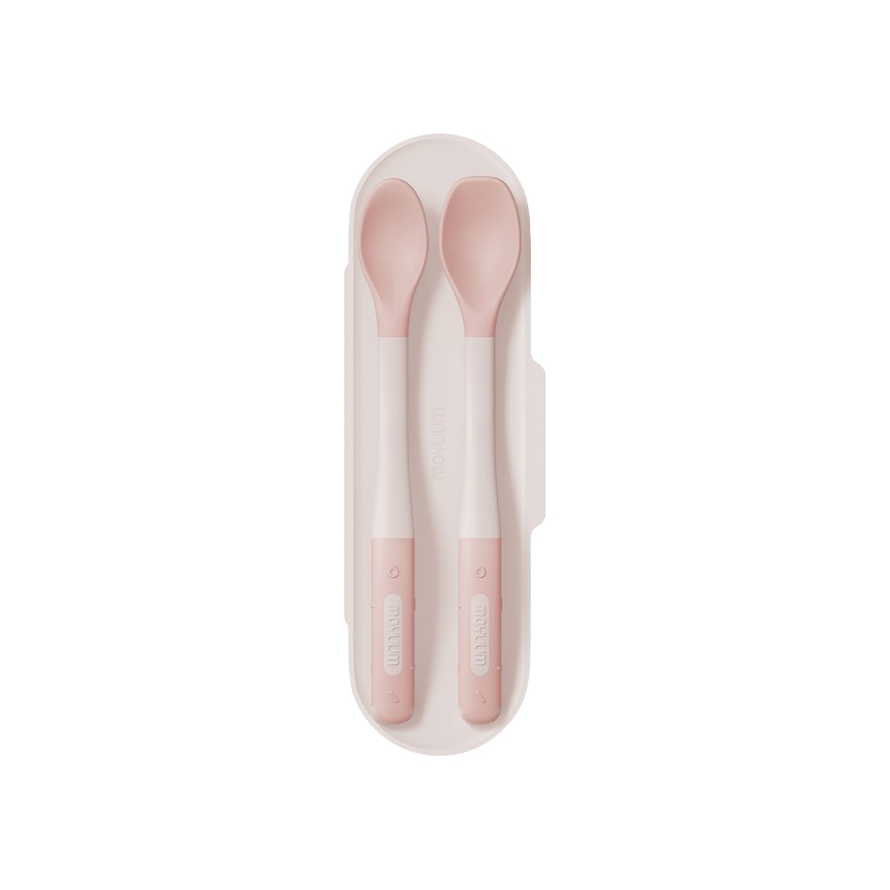 Bộ thìa ăn dặm silicon Moyuum - 2 cấp độ - 4m+ - Màu Vàng mật ong/Hồng blossom