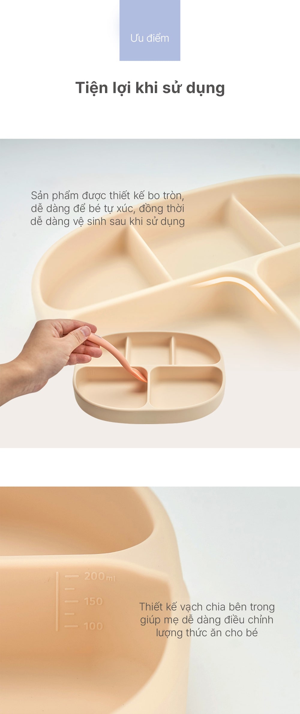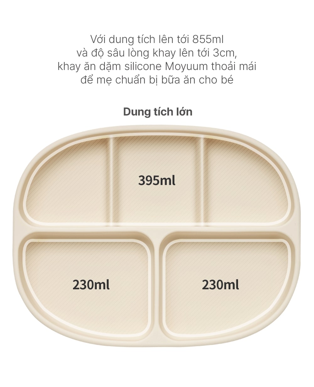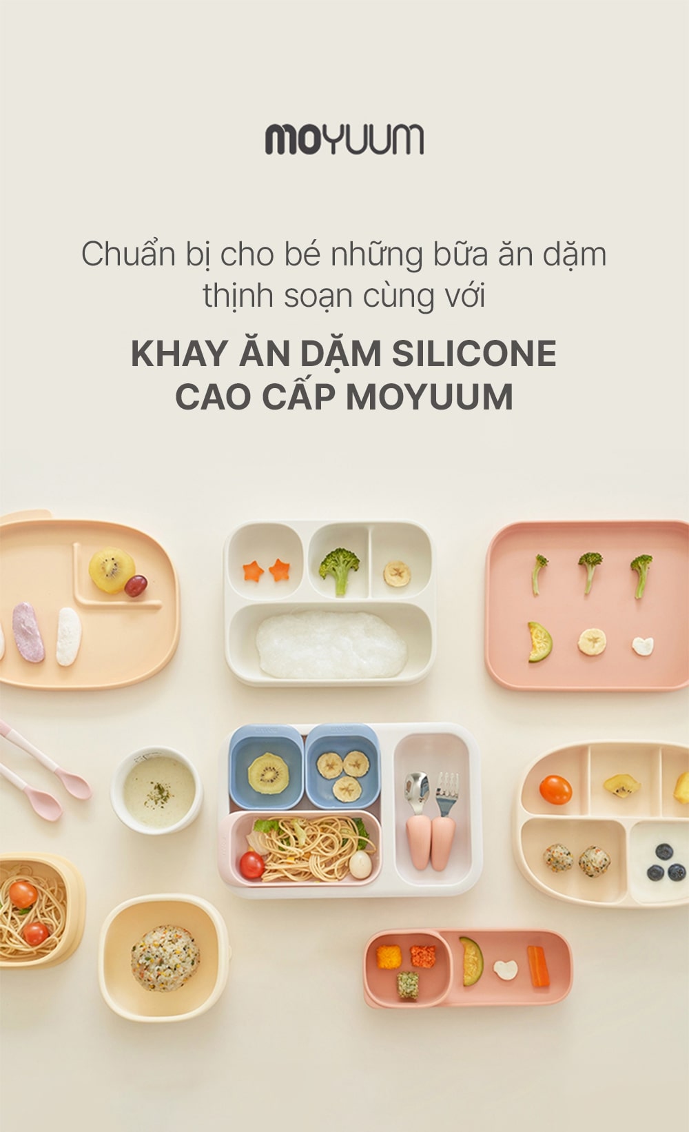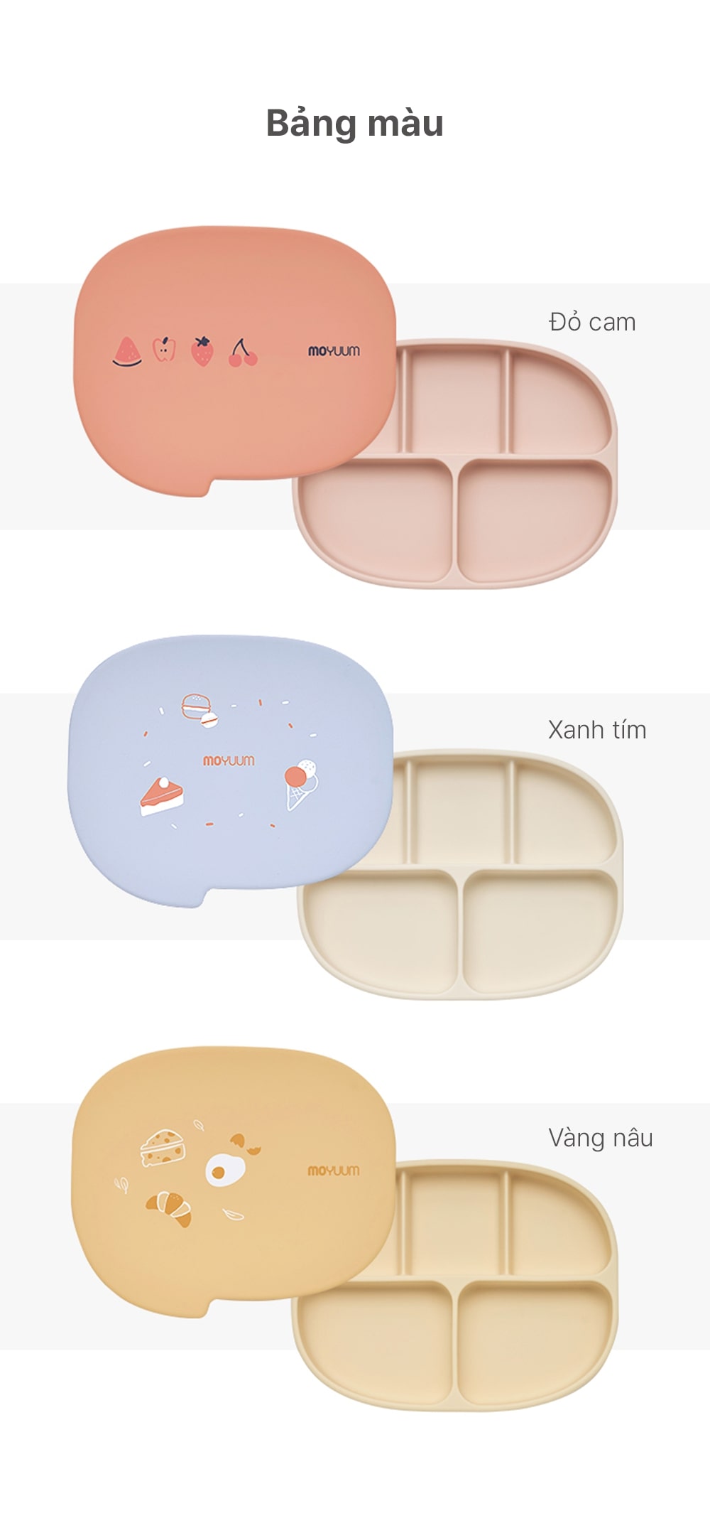 Khay ăn dặm silicone Moyuum - 5 ngăn - Màu Hồng be/Xanh tím/Vàng nâu