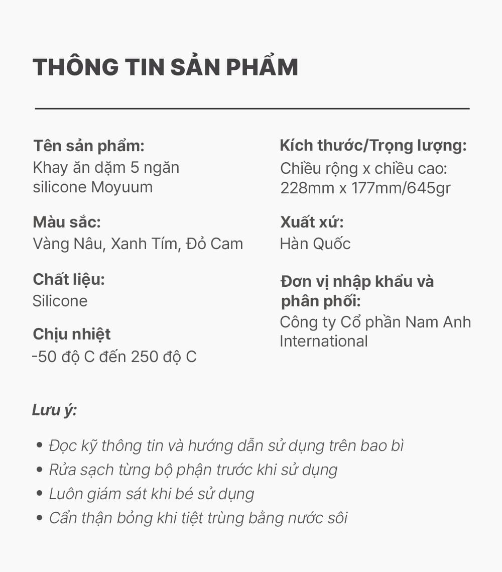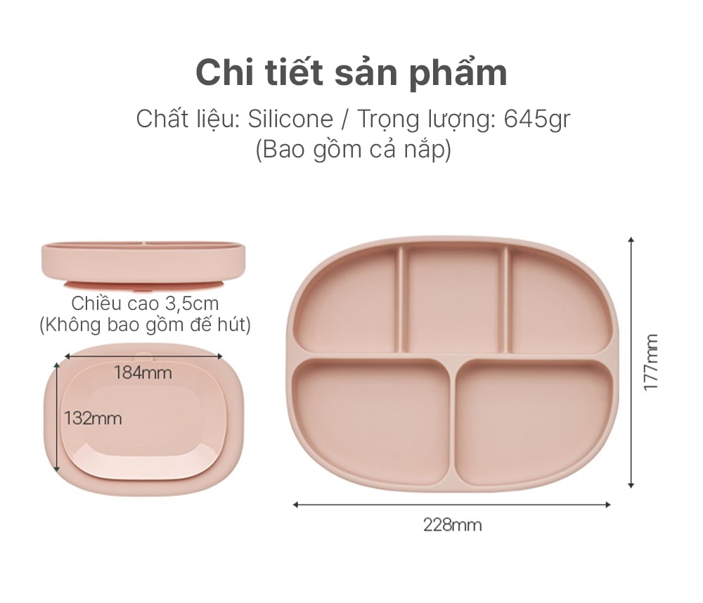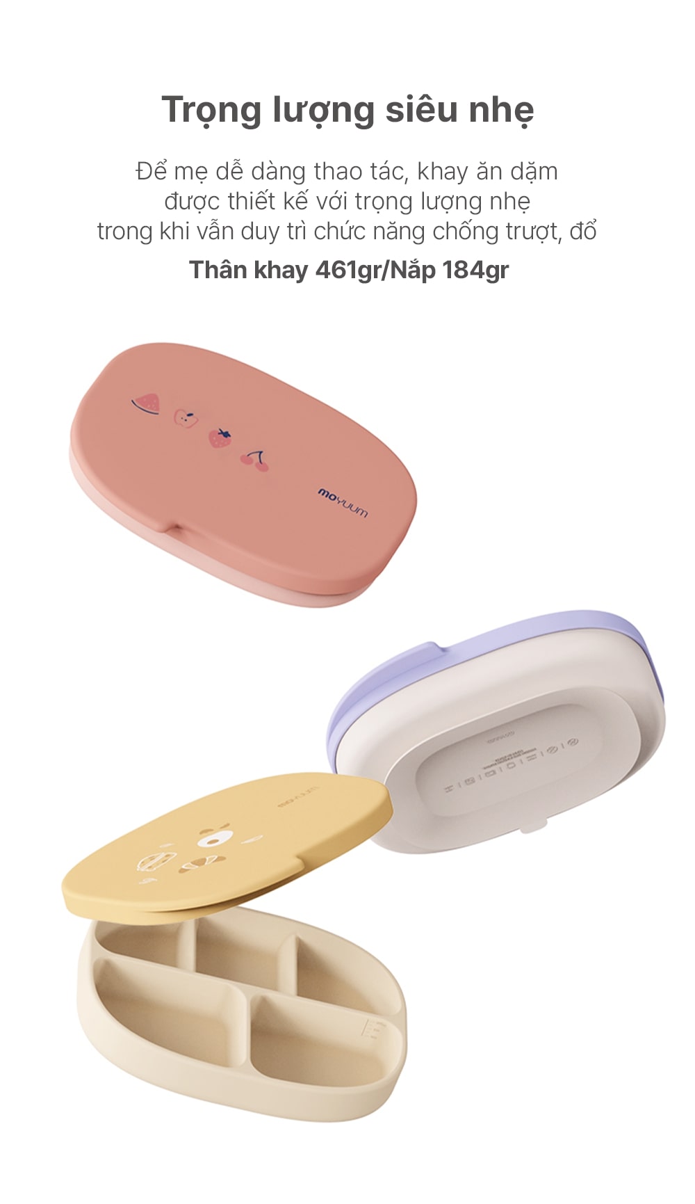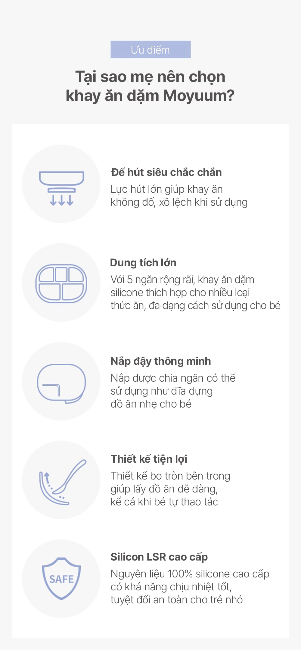 Khay ăn dặm silicone Moyuum - 5 ngăn - Màu Hồng be/Xanh tím/Vàng nâu