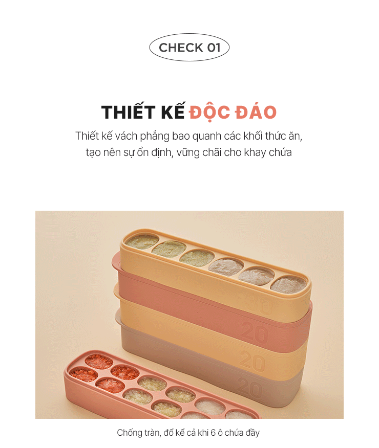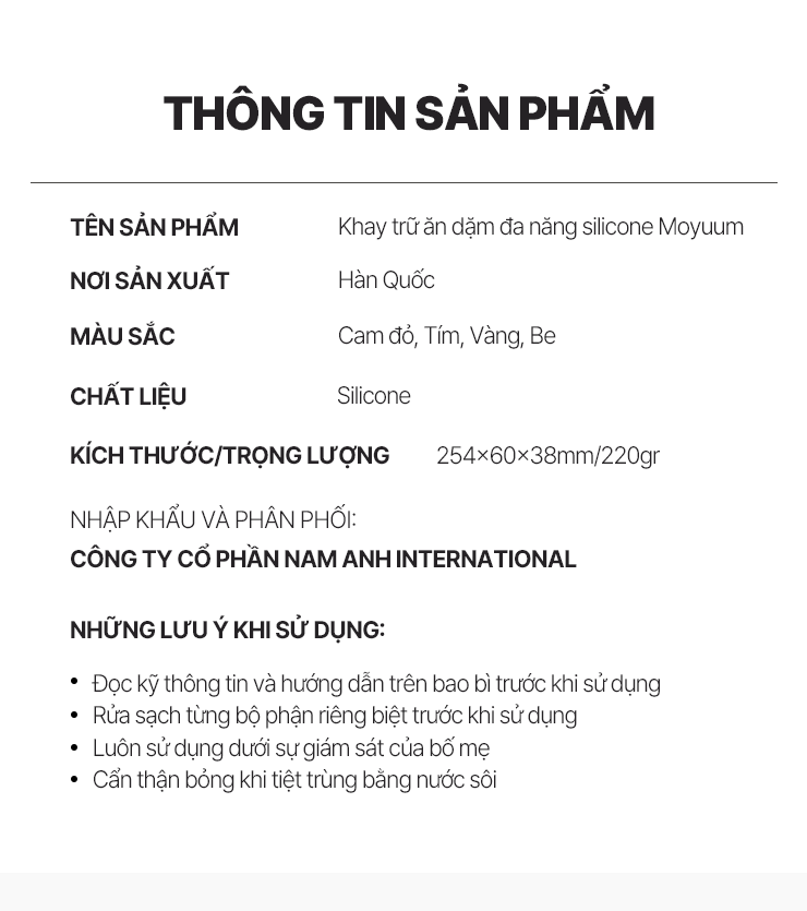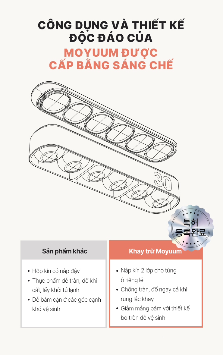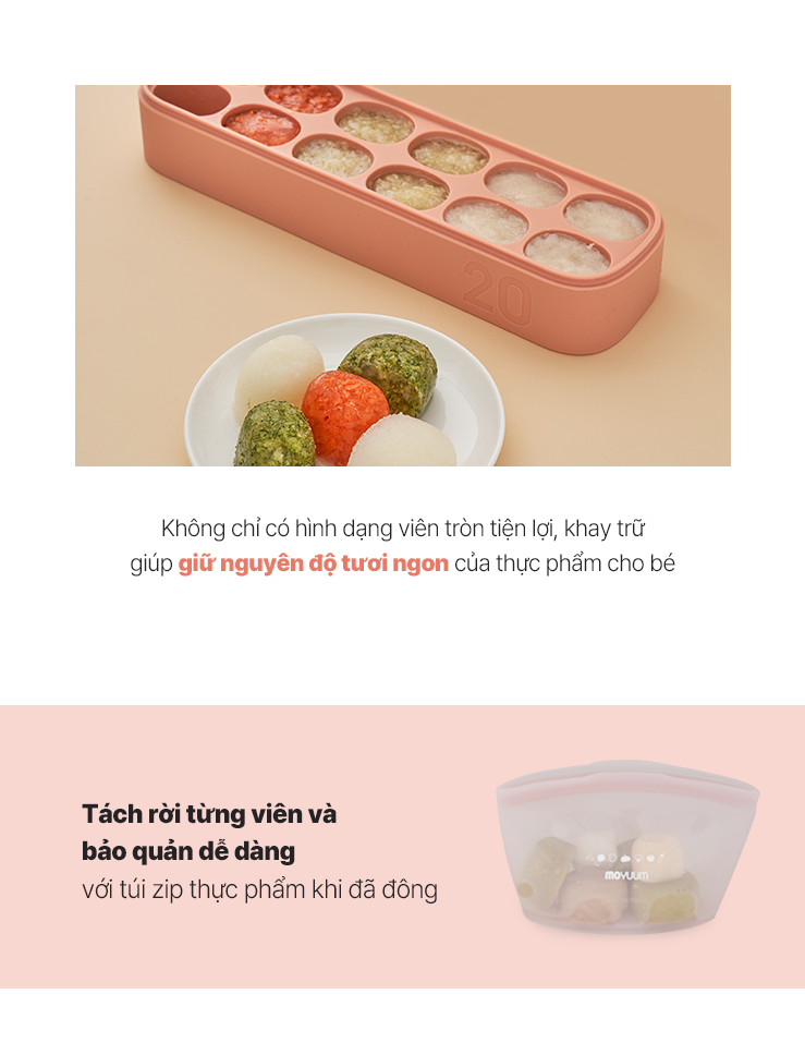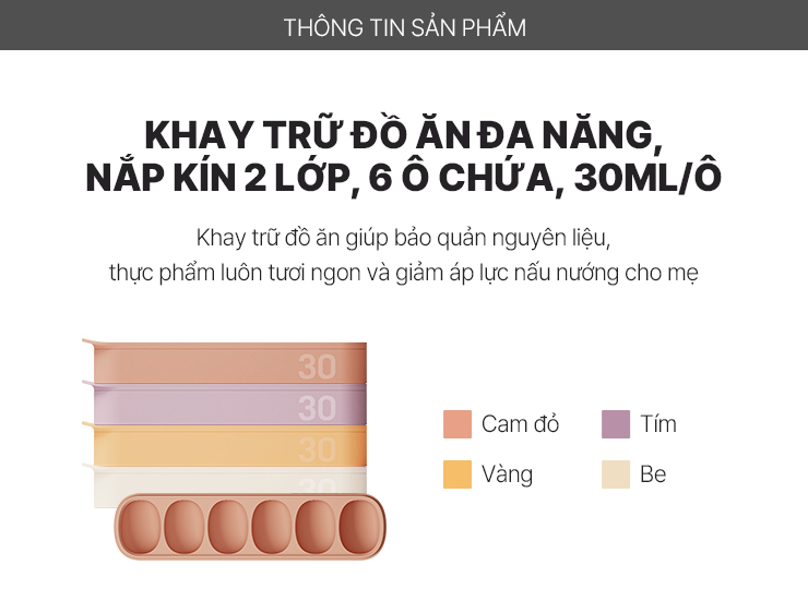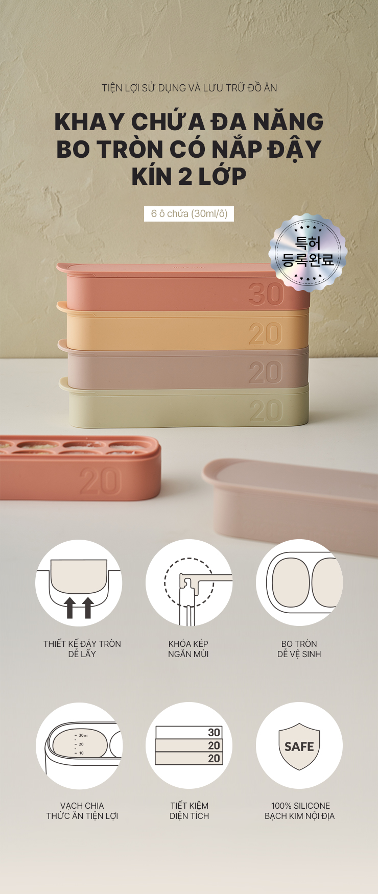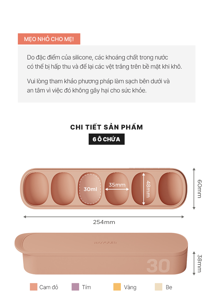 Khay trữ ăn dặm silicon Moyuum - 4 màu Vàng/Be/Tím/Cam đỏ - 6 ô | 30ml/ô