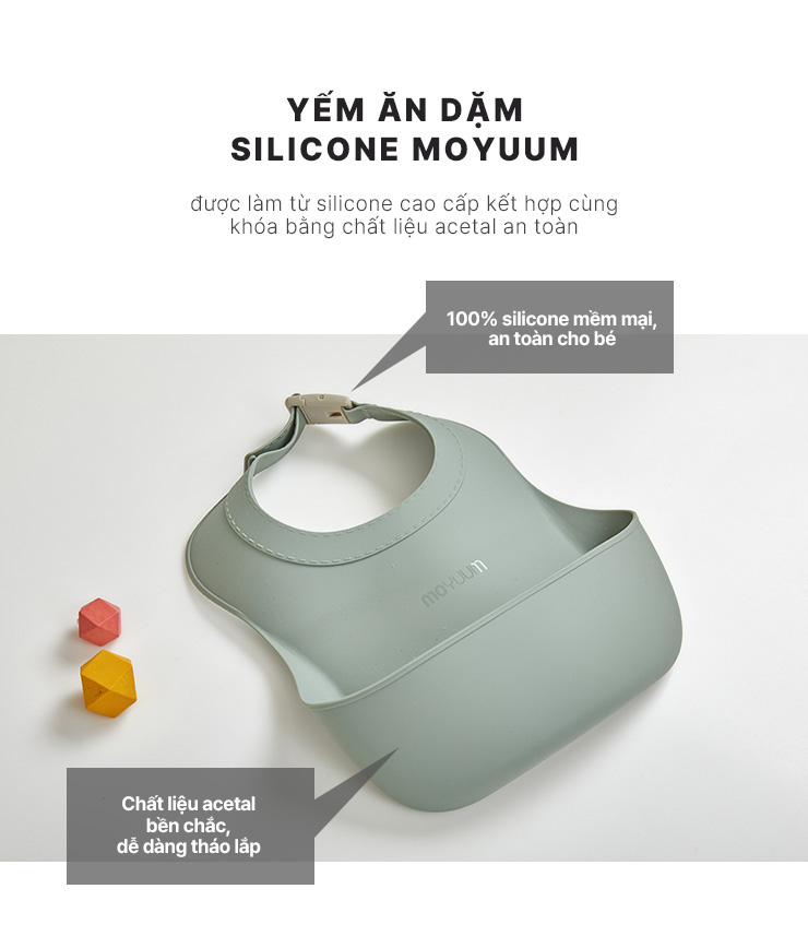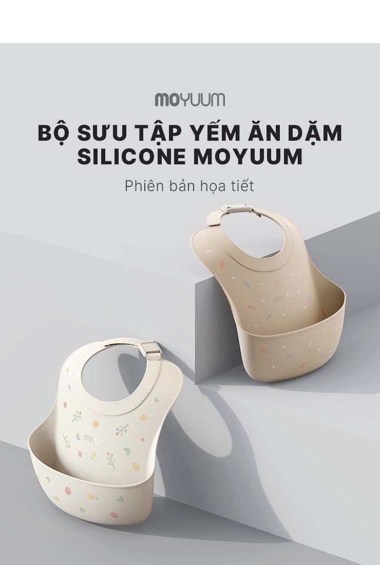 Yếm ăn dặm silicone Moyuum - BST sắc màu - Be/Xanh lá/Đỏ cam/Vàng