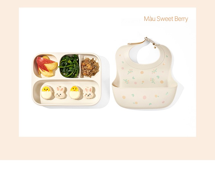 Khay ăn dặm silicone Moyuum - 5 ngăn - Màu Hồng be/Xanh tím/Vàng nâu