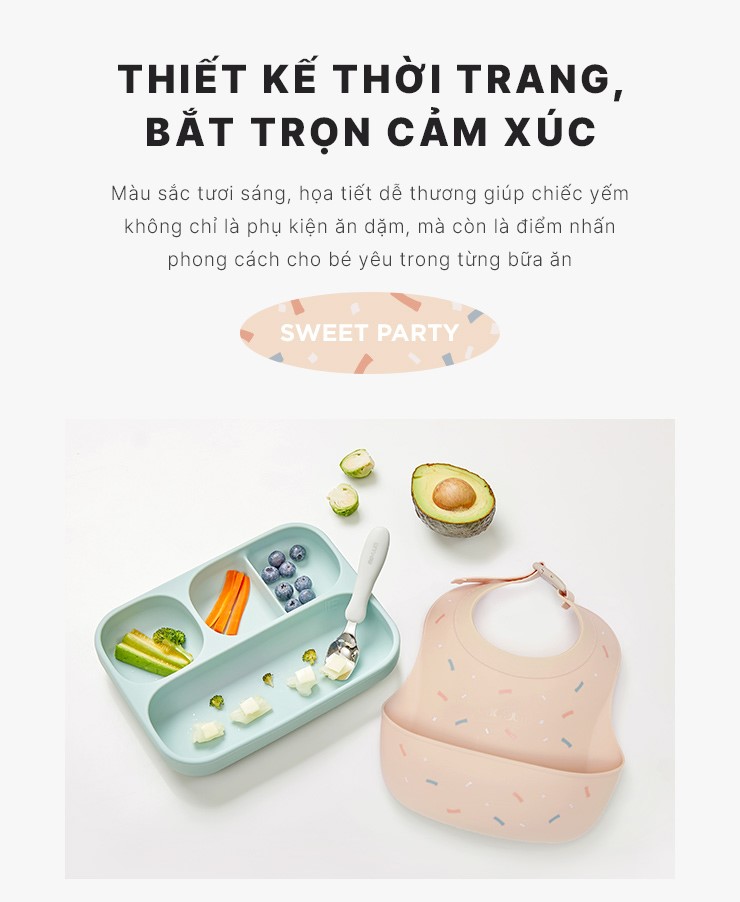 Yếm ăn dặm silicone Moyuum - BST họa tiết - Sweet Berry/ Sweet Party