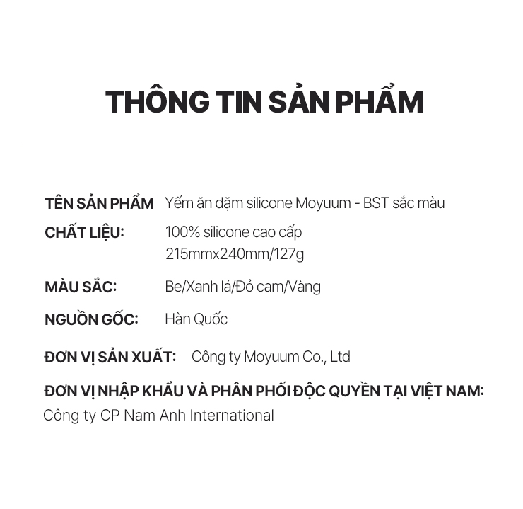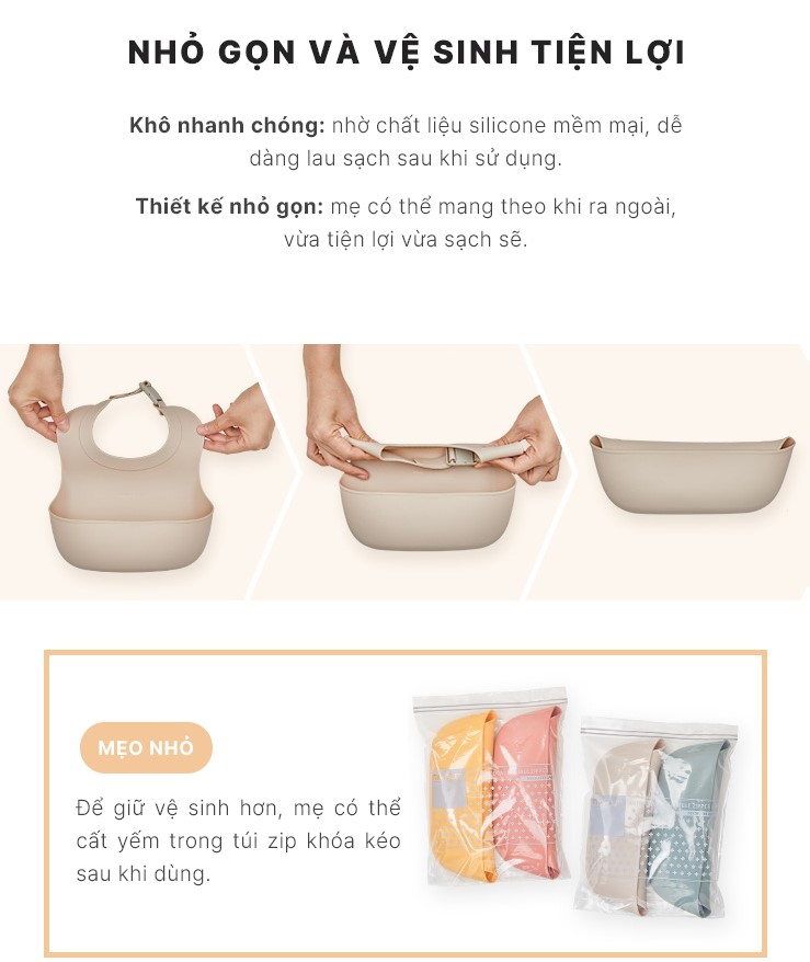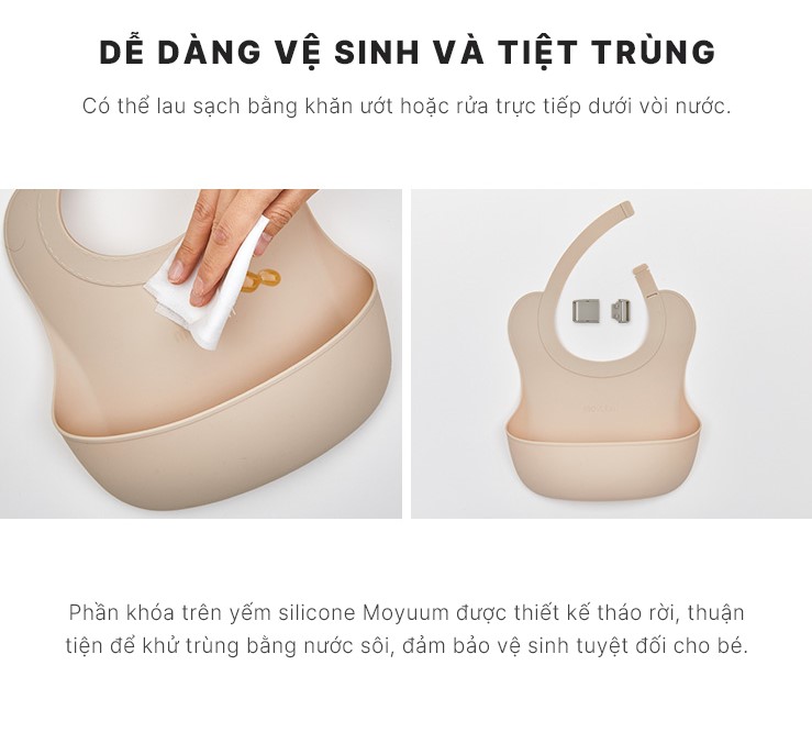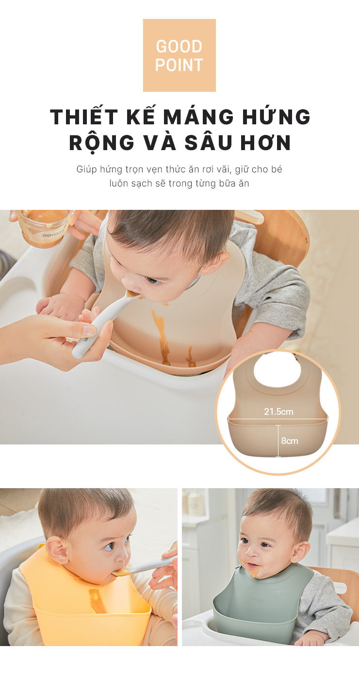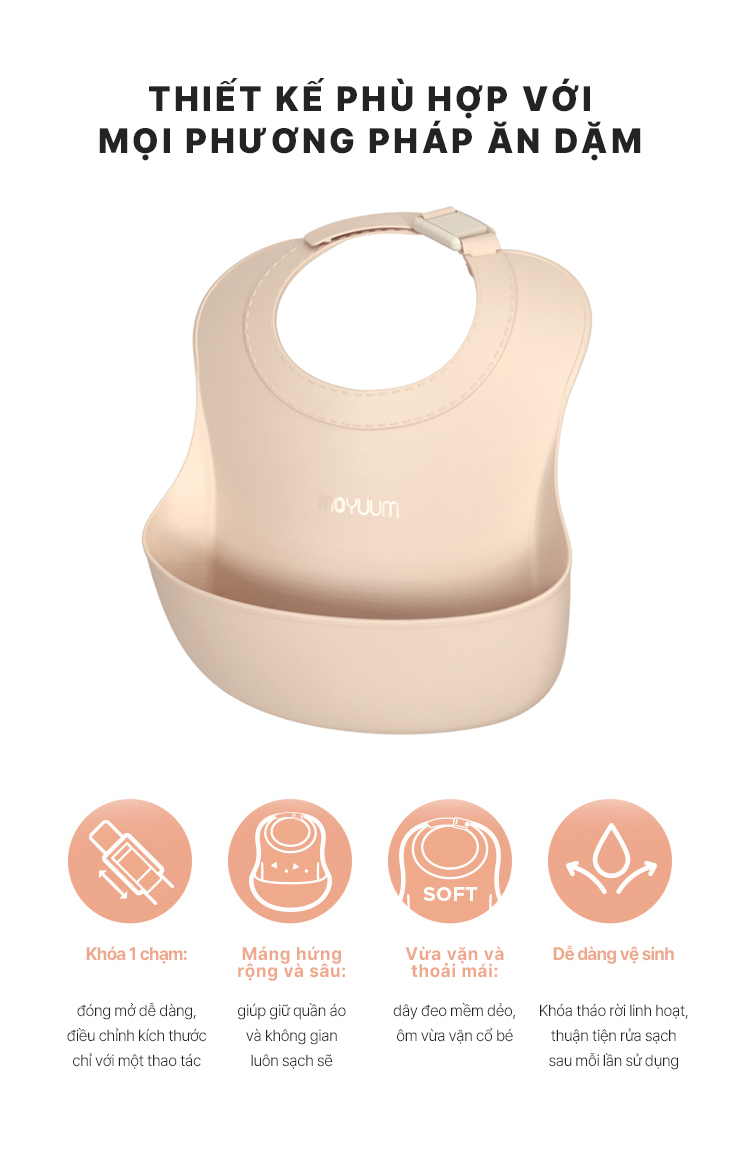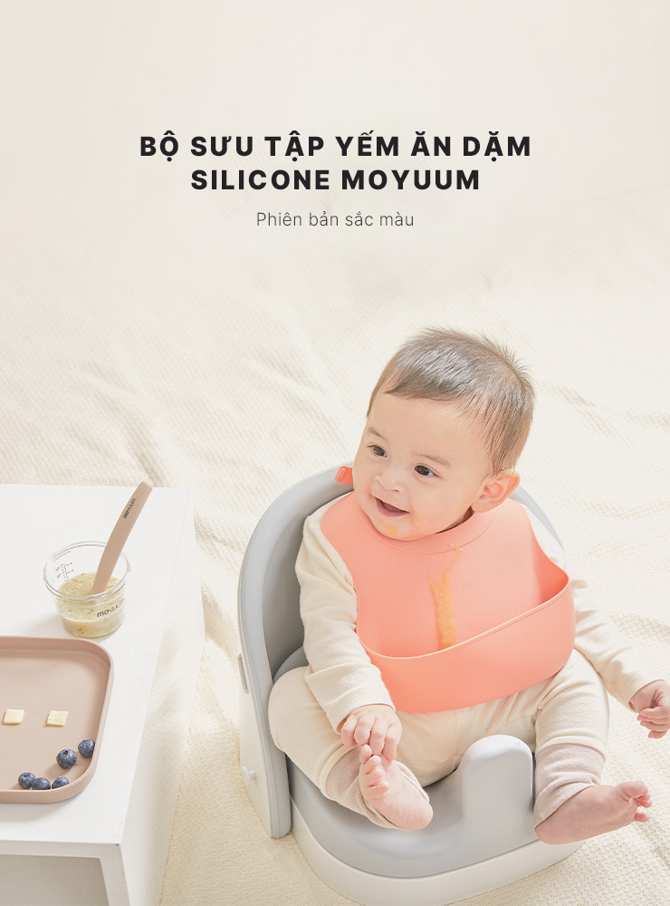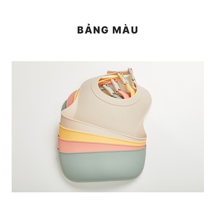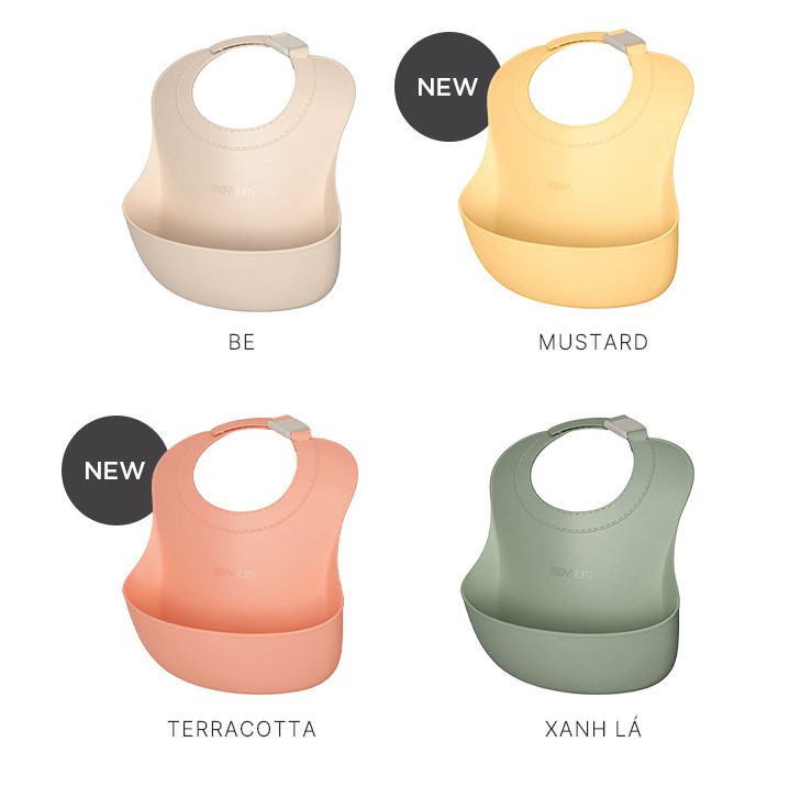 Yếm ăn dặm silicone Moyuum - BST sắc màu - Be/Xanh lá/Đỏ cam/Vàng