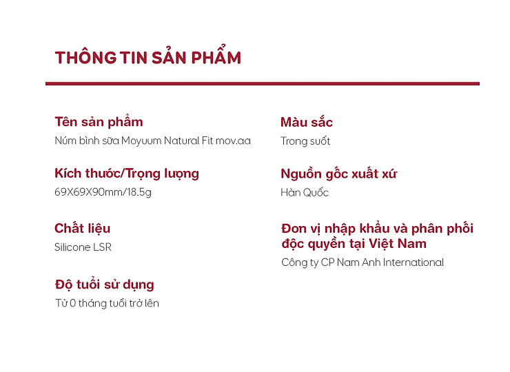 Núm bình sữa Moyuum Natural Fit phiên bản mov.aa - Size 1/2/3/4