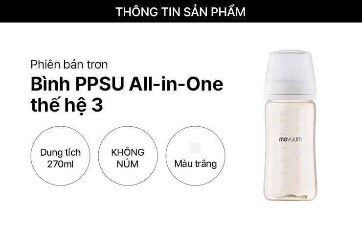 Thế hệ 3 - Bình PPSU Moyuum - Mẫu trơn - 270ml - KHÔNG NÚM